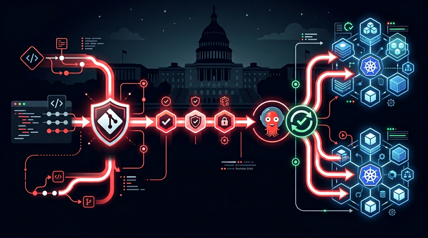 For the CI/CD approval gate patterns that feed the GitOps pipeline, see CI/CD Approval Gates for Regulated Pipelines. For STIG compliance in Kubernetes, see STIG Compliance Automation in Kubernetes.